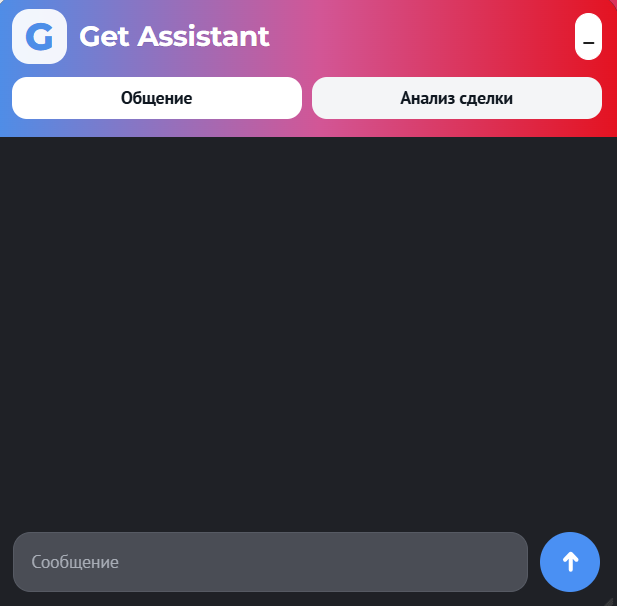 Виджет GetAssistant представляет из себя персонального ИИ ассистента, способного отвечать на вопросы как по сделке, так и по общим темам.